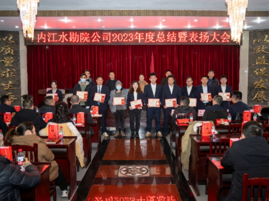 为总结回顾2023年公司发展情况,表扬年度先进,促进下一年各项工作开展,2024年2月5日,水勘院公司组织召开了2023年度年终总结暨表扬大会,会议由公司总支副书记、总经理李胜东主持,内江市国有资产监督管理委员会主任万晓燕、公司外部董事曹德华出席会议,公司全体员工参会。