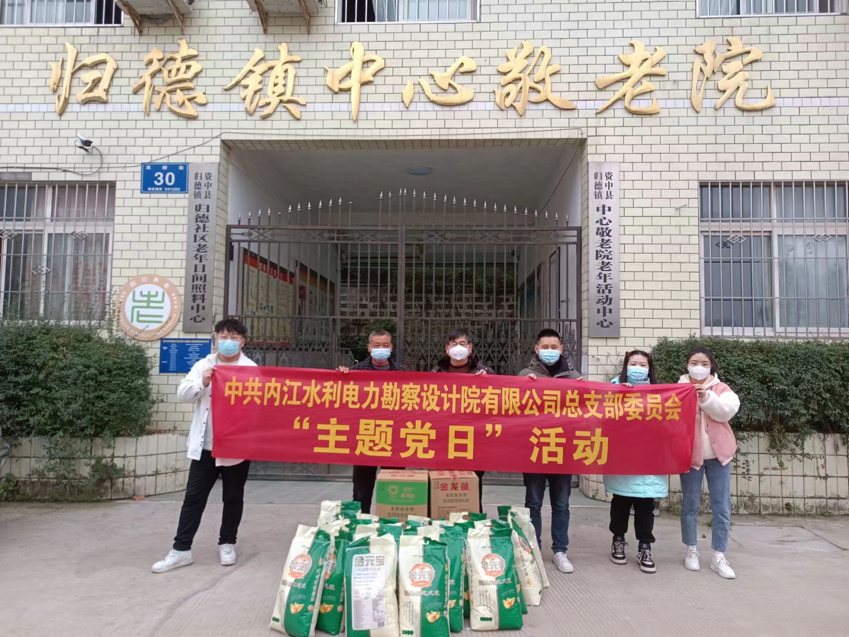 岁末寒冬。春季临近。为继承和发扬中华民族尊老爱老的优良传统,体现公司对老年人的关心和支持,1月11日下午,副书记、工会主席汪少军带领部分党员同志前往资中县归德镇中心敬老院开展了慰问活动,为老人们送上了米、油等慰问品,带去了公司的关怀和温暖。