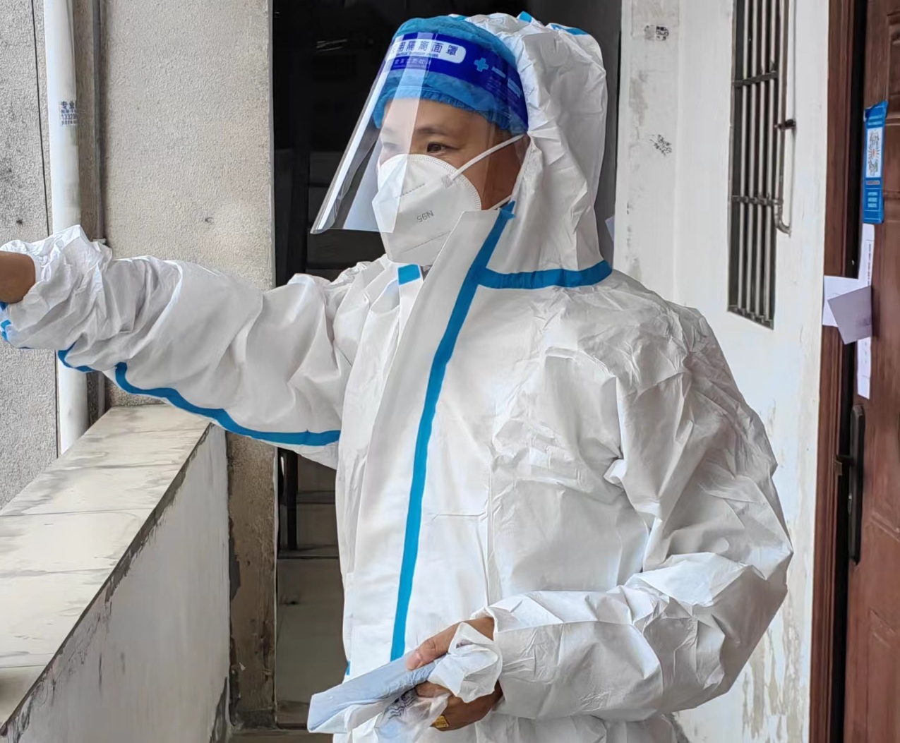 一大早上穿上防护服、戴上口罩的她们便开始采集核酸信息,为了节省防护物资,有时候很久不能吃一口饭,不能喝一口水,想上厕所也只能强忍着。等结束工作脱下防护服,浑身早已被汗水浸透,被卸下防护口罩后的脸上也留下了一道道深深的印痕。